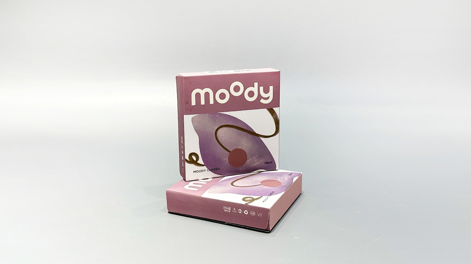 These custom-designed pink folding cartons feature abstract patterns that harmonize with a unique contact lens collection. The packaging provides a tailored solution for the contact lens industry, showcasing the product against a plain background while maintaining brand cohesion through its distinctive appearance.