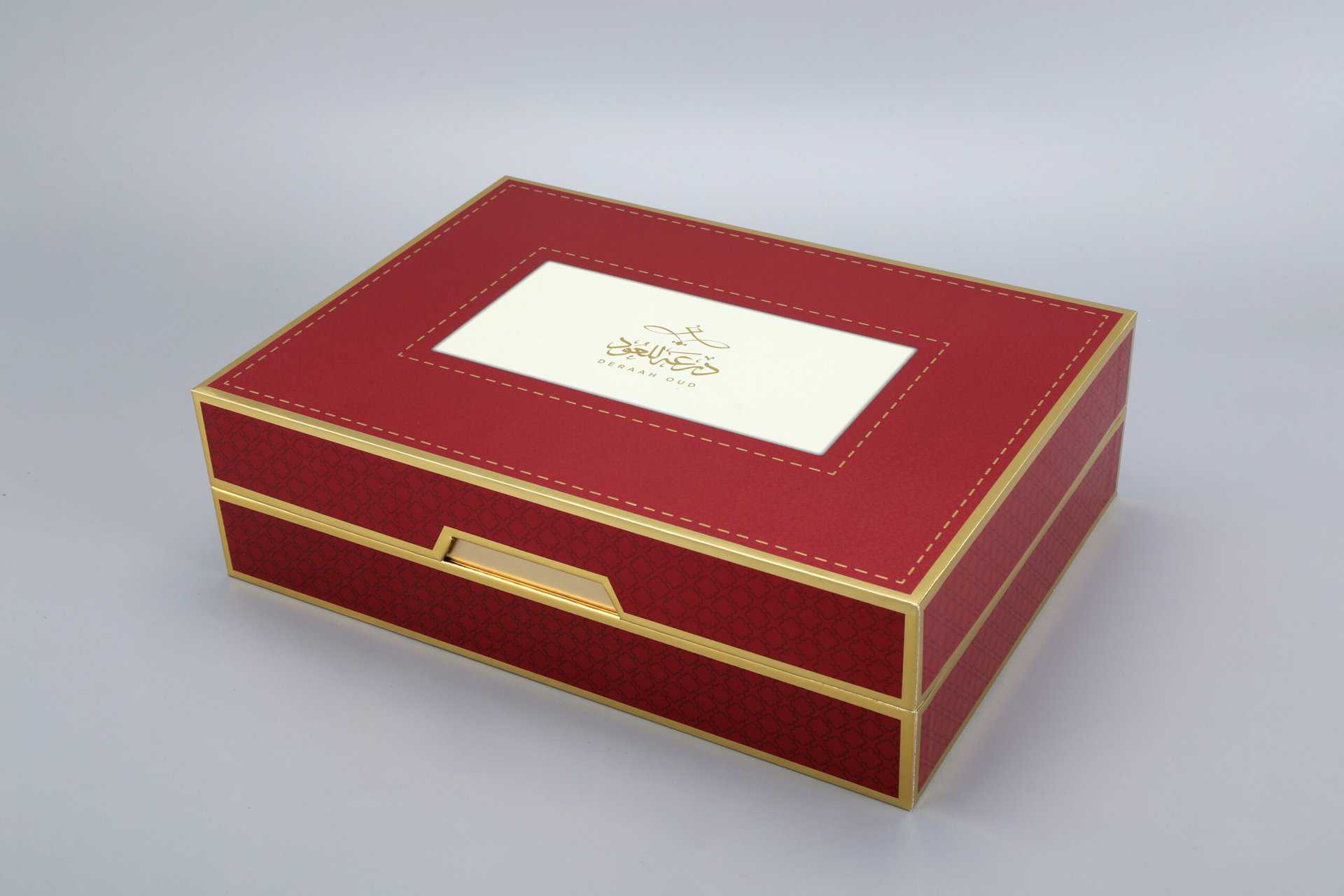 The Luxurious UV printing folding paper box is a packaging solution designed for the perfume industry. This red box incorporates foil stamping and varnishing techniques, enhancing its visual appeal.