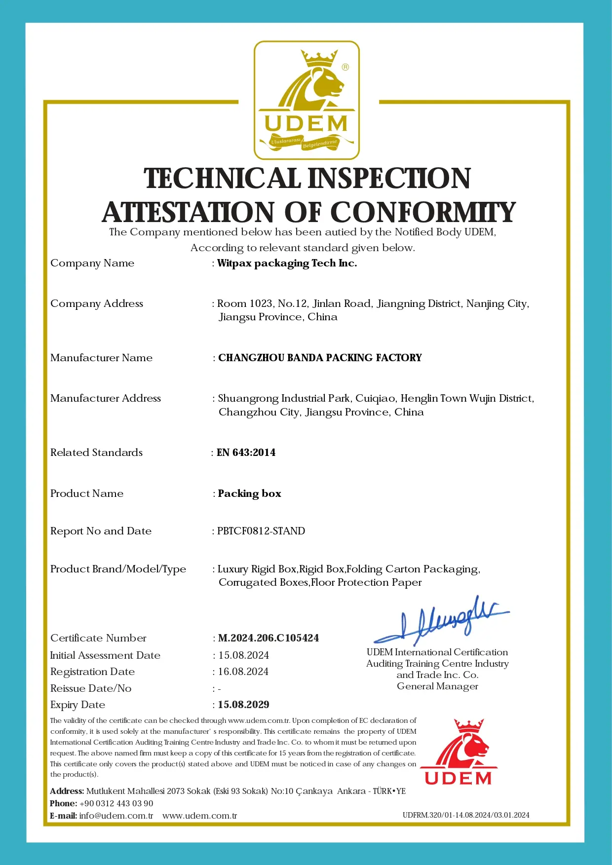 WITPAX's UDEM certification demonstrates our commitment to high-quality standards and ethical practices in our manufacturing processes. This certification assures you of consistent product quality and reliability.