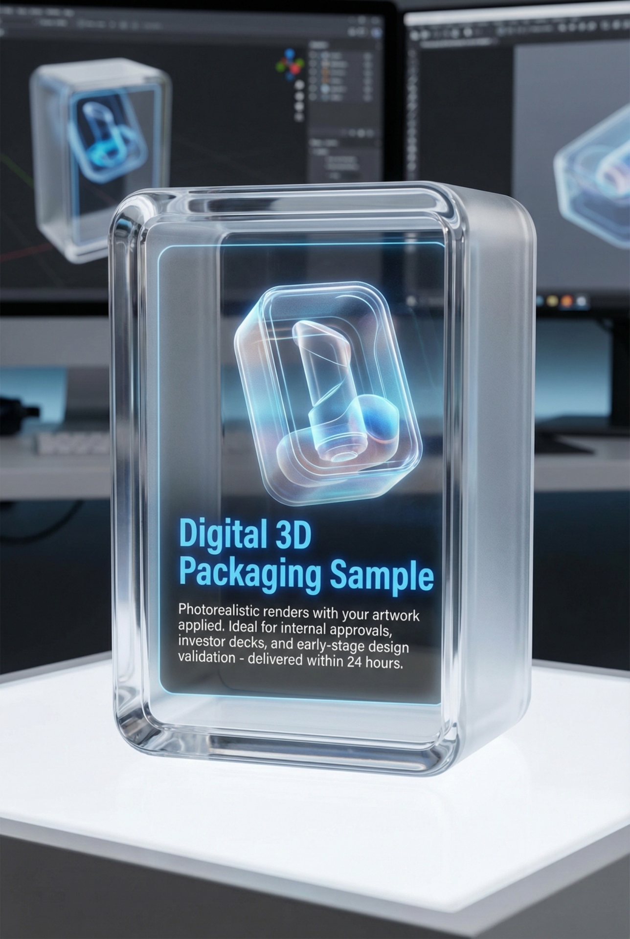 Photorealistic renders with your artwork applied. Ideal for internal approvals, investor decks, and early-stage design validation — delivered within 24 hours.