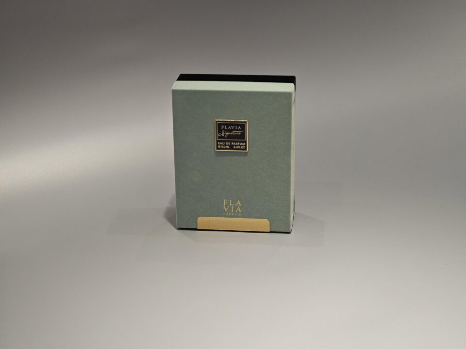 The lid and base perfume box integrates varnishing, UV printing, and foil stamping techniques to create luxurious packaging for the fragrance industry.