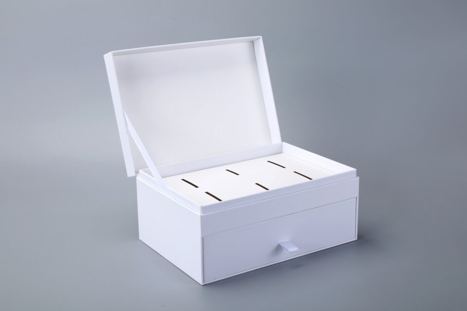 The Drawer Box is a smart storage solution. It has two levels and a handy drawer. This box is perfect for keeping things tidy and easy to reach.